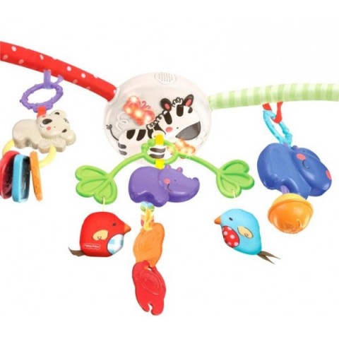 Там и с встроенным мобиль с подсветкой, 2 уровня громкости, 3 варианта звучания музыки (просто музыка, музыка+крутится мобиль, музыка+загораются попеременно красный и оранжевый огоньки), и зеркало и игрушки.